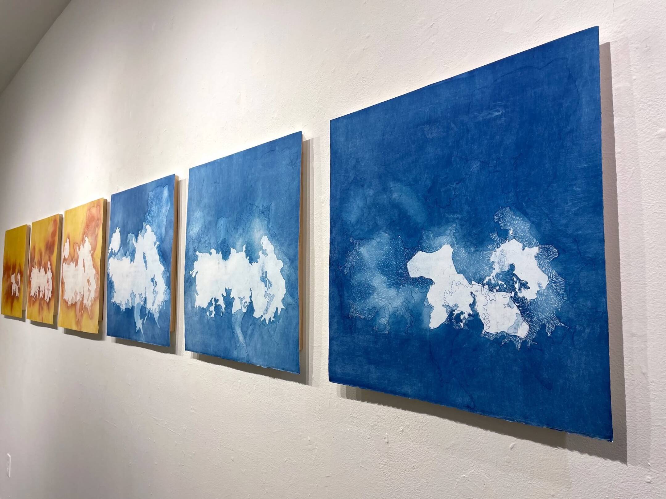 GRO Fellow Megan Broughton is a multidisciplinary artist based in San Francisco. Her work addresses the climate crisis, loss, transformation, and the sublime. She exhibits a new suite of etchings that combine themes and images of the January 2025 Los Angeles Fires and the Arctic, unpacking grief of the socio-political climate chaos. The exhibit also includes an ongoing series of large scale graphite drawings by Broughton, created to grapple with the web of the climate crisis, greed, and violence. Many of the material shapes and patterns in the show — ice, fog, air currents, fire — are relics of the artist’s on-site studies in the Arctic that continue to influence her practice.