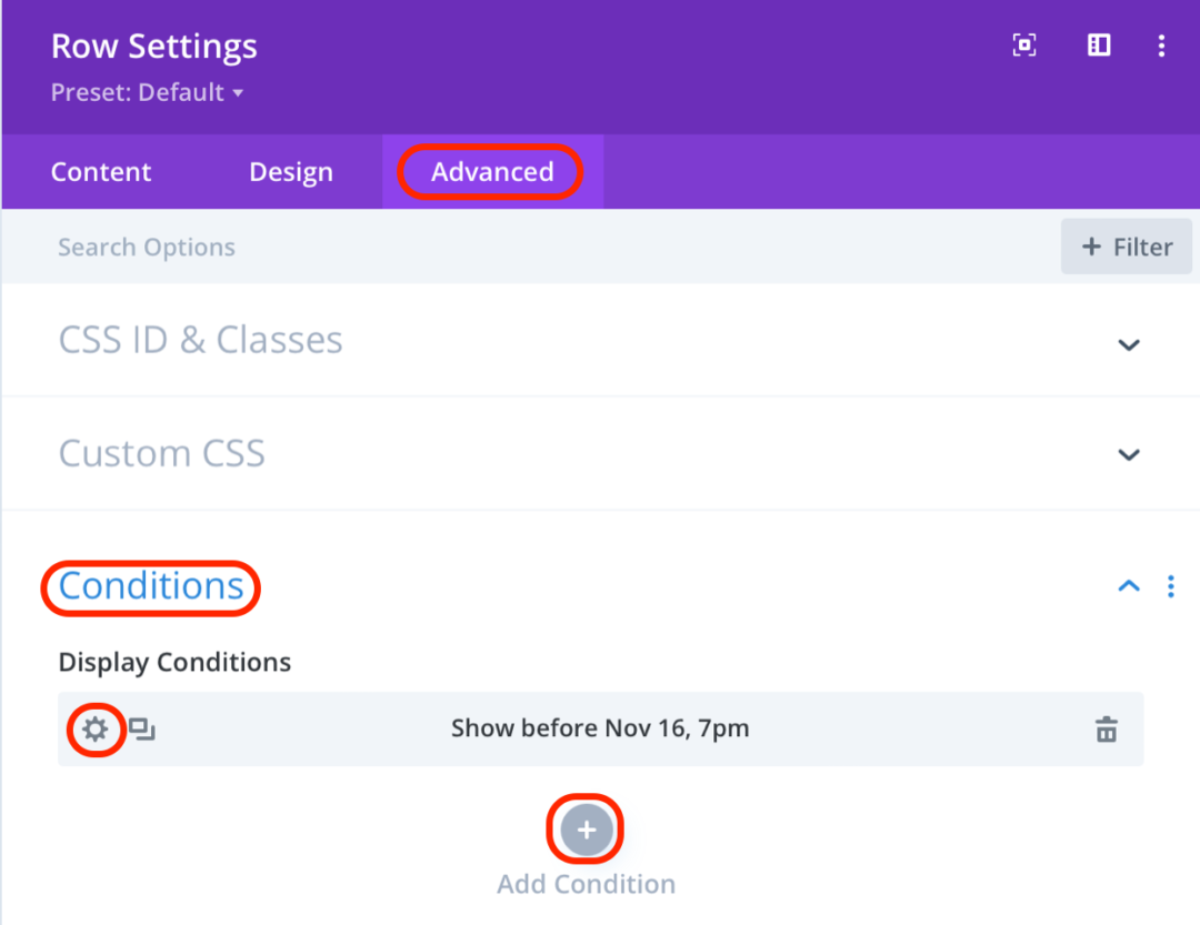 CONDITIONS: Setting Date & Time CONDITIONS on Sections, Rows, and Modules